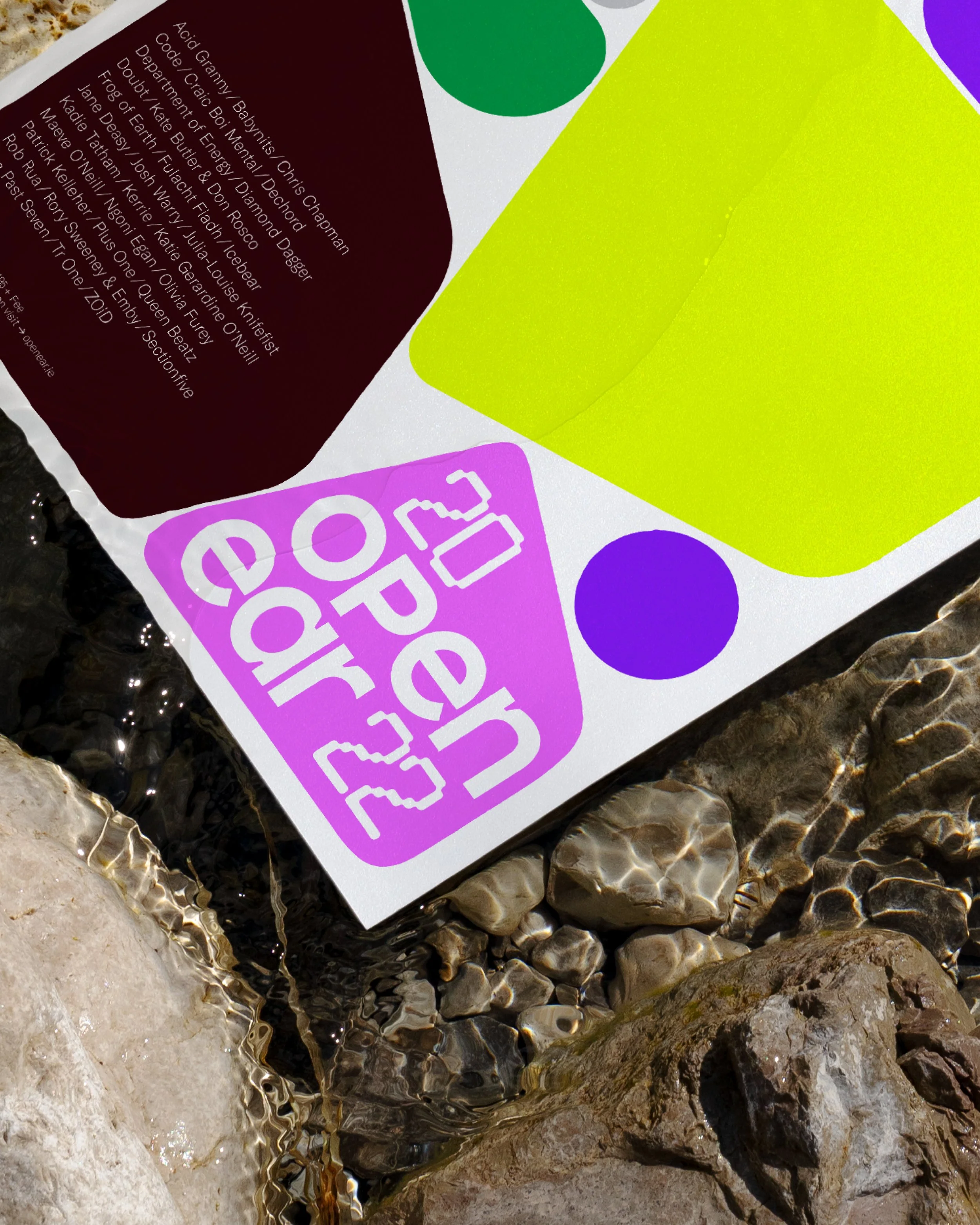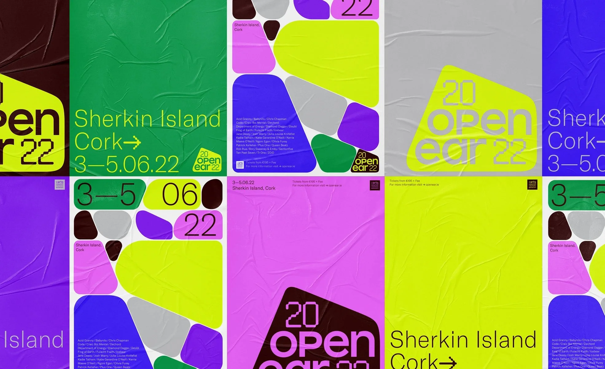 Open Ear Music Festival takes place every second year on Sherkin Island, featuring the best of Irish experimental music—from the avant-garde, through to dance, jazz, trad and beyond. We created an identity inspired by the quintessential Irish stone wall with an energetic colour palette to express the alternative energy that the festival celebrates by bringing beautiful audio other-ness across the waves of West Cork.